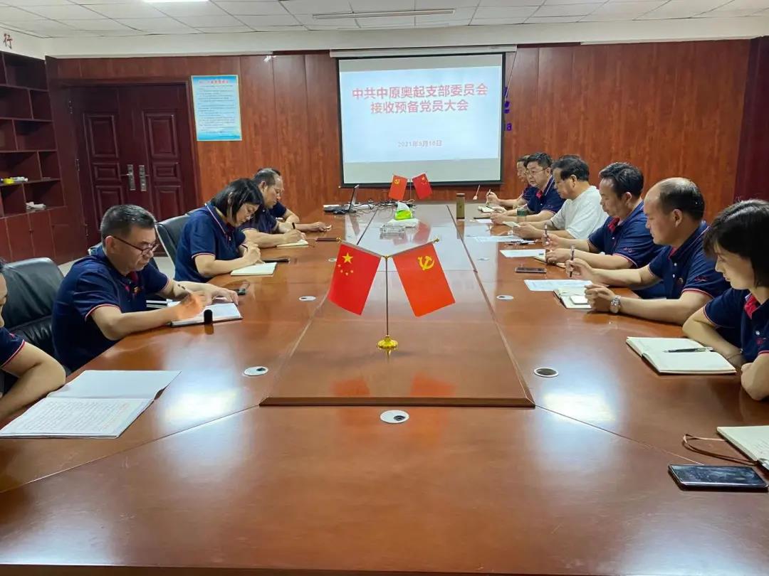5月11日下午,中原奧起黨支部召開接收預(yù)備黨員大會。支部書記付彩廷等黨員同志參加會議。會議由黨支部副書記付強主持。