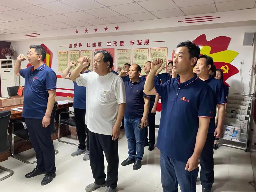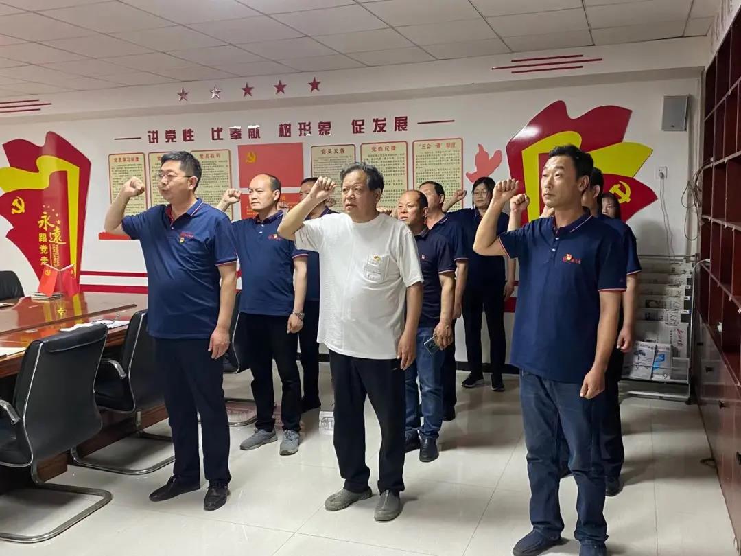 黨支部副書記付強帶領(lǐng)預(yù)備黨員進行入黨宣誓,全體黨員陪同重溫入黨誓詞。